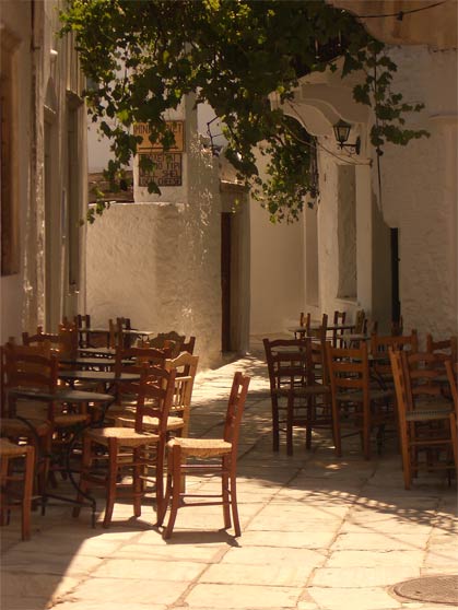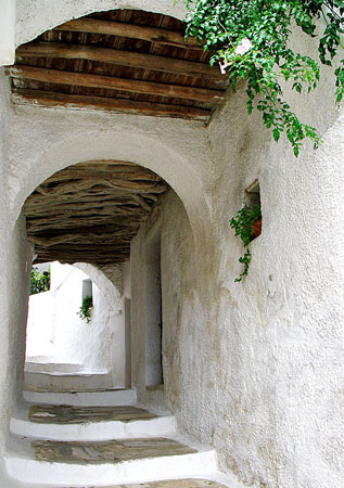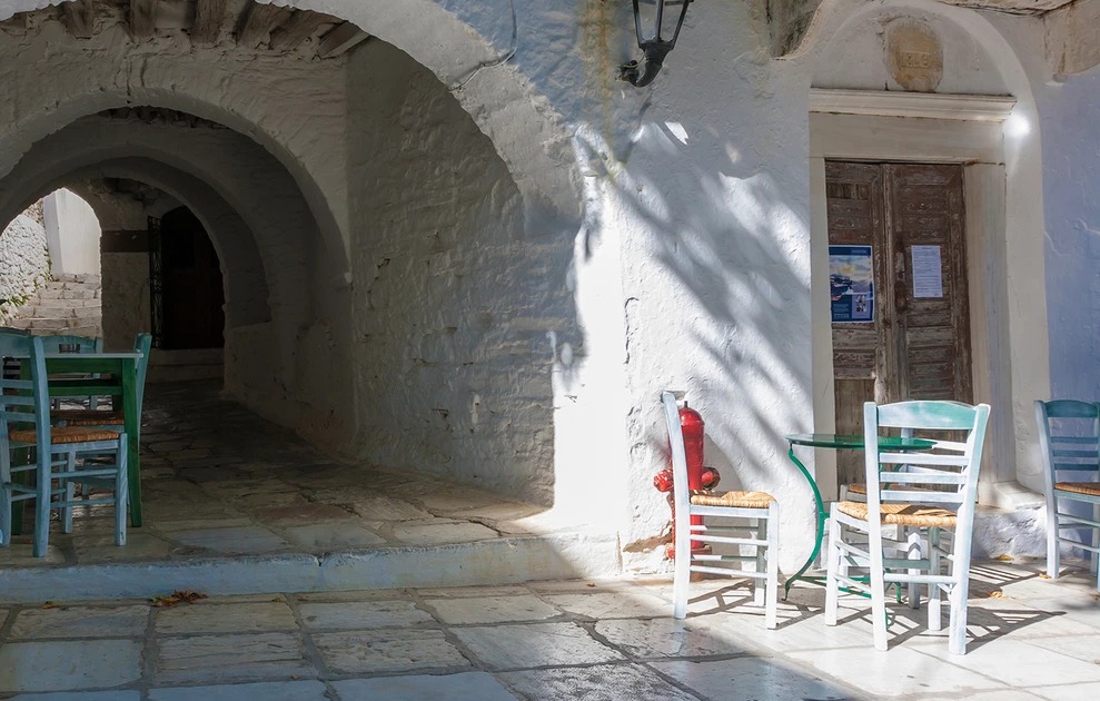 Καλντερίμια χαρακτηριστικής κυκλαδίτικης αρχιτεκτονικής με θολωτές καμάρες, όμορφα παλιά διώροφα σπίτια και πλατείες με παραδοσιακά καφενεία, εντυπωσιακοί ενετικοί πύργοι και ενδιαφέροντα μουσεία συνθέτουν την εικόνα του χωριού.