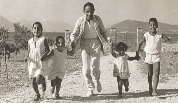 Ο Δημ. Πικιώνης με τα παιδιά του στο σπίτι της Αίγινας