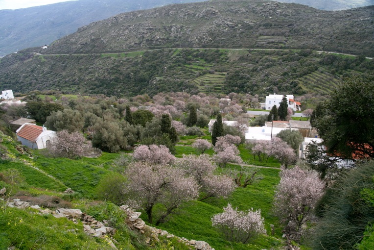 Αγροτικά τοπία της Άνδρου με αμυγδαλιές