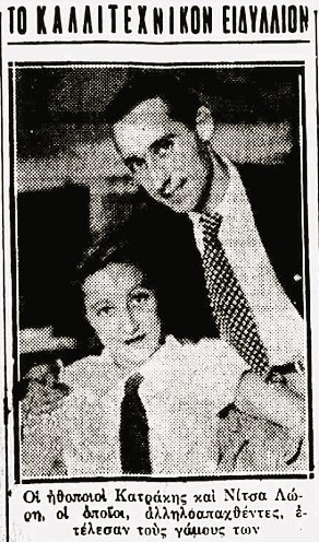 Το δημοσίευμα της εφημερίδας «Ακρόπολις», της 8ης Σεπτεμβρίου 1934, ανέφερε για τον γάμο τους, για τον οποίο οι δύο νέοι χρειάστηκε να «κλεφτούν», αφού οι γονείς της νύφης ήταν αντίθετοι: «Δύο χαρούμενα νέα παιδιά του θεάτρου της πρόζας ετερμάτισαν προχθές το απόγευμα το μακρόν όπως βεβαιώνουν, ειδύλλιον των με νόμιμον ένωσιν. Πρόκειται περί της χαριτωμένης ξανθομαλλούσας νεαράς καλλιτέχνιδος Νίτσας Λώρη και του συμπαθούς νεαρού ζεν πρεμιέ του θιάσου Αργυρόπουλου κ. Μάνου Κατράκη. Ο γάμος έγινε προχθές το απόγευμα εις το ναΐσκον της Αγίας Βαρβάρας του Χαλανδρίου με προσκεκλημένους τέσσαρας-πέντε φίλους και συναδέλφους του ευτυχούς ζεύγους…».