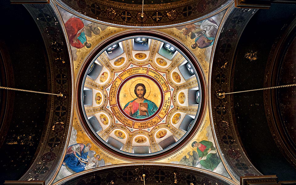 Οι υπάρχουσες τοιχογραφίες είναι του τέλους του 19ου και των αρχών του 20ού αιώνα. Από αυτές σημειώνουμε τον εξαίρετο Παντοκράτορα και την Πλατυτέρα της αψίδας του Ιερού Βήματος, όπου η Θεοτόκος εικονίζεται ένθρονη, με έναν γονατιστό άγγελο στα δεξιά και έναν στα αριστερά της.
