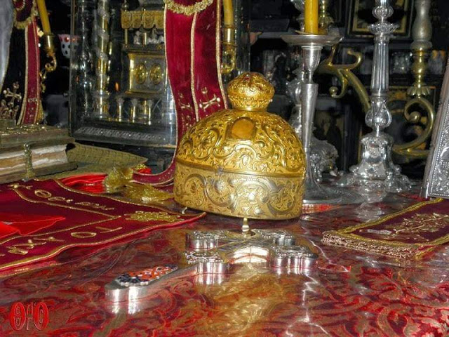 Αριστερά: Η τιμία κάρα του Μεγάλου Βασιλείου, αφιέρωμα