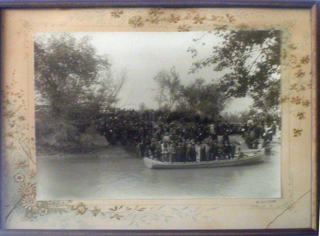 Ο κόσμος έπιανε την ακρογιαλιά κι ανέβαινε ο καθένας όπου εύρισκε, για να μπορεί να βλέπει. Τα σπίτια πού ήτανε ένα γύρο γεμίζανε κόσμο. Οι γυναίκες θυμιάζανε από τα παραθύρια. Από το μέρος της θάλασσας ήτανε μαζεμένα ίσαμε 100 καΐκια και βάρκες αμέτρητες, με τις πλώρες γυρισμένες κατά το μέρος πού στεκότανε ο δεσπότης.