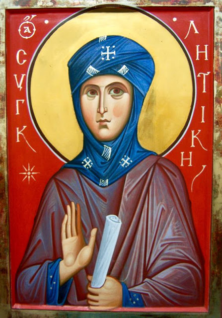 Σοφίᾳ καὶ χάριτι, κεκοσμημένη σεμνή, ἀκλόνητος ἔμεινας, ὡς ὁ Ἰὼβ ὁ κλεινός, ἐχθροῦ ἐπίθεσιν· ὅθεν Συγκλητική σε, ἡ οὐράνιος δόξα, δέδεκται μετὰ τέλος, ὡς παρθένον φρονίμην· ἐν ᾗ τῶν μεμνημένων σου ἀεὶ μνημόνευε.