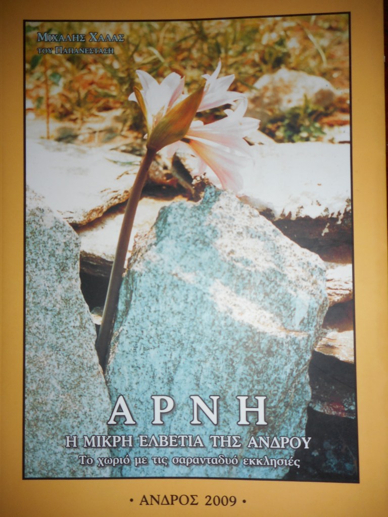 – Μιχάλης Χαλάς του Παπανεστάση, «Άρνη η μικρή Ελβετία της Άνδρου. Το χωριό με τις σαρανταδυό εκκλησιές», Εκδόσεις Δήμου Υδρούσας, Άνδρος 2009.
