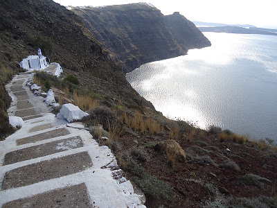 Μέσα στα σκούρα, ηφαιστειακά βράχια της καλντέρας της Σαντορίνης, ξεχωρίζει το ολόλευκο εκκλησάκι του Αγίου Αντωνίου του Ατραγούδιστου. Ο ναΐσκος είναι κτίσμα του 1050 μ.Χ. και φέρει τοιχογραφίες του 1750, οι οποίες εν μέρει έχουν βεβηλωθεί στο πρόσωπο από την εποχής της τουρκοκρατίας. Σύμφωνα με την παράδοση, στο σημερινό σημείο του ναού, βρέθηκε εικόνα του Αγίου Αντωνίου και ενώ οι κάτοικοι την μετέφεραν στην εκκλησία του Αγίου Μάρκου (λίγο ψηλότερα, στον λόφο του Προφήτη Ηλία), η εικόνα την επομένη ημέρα βρισκόταν ξανά στο ίδιο σημείο στην θέση αυτή. Έτσι έχτισαν εκεί το ομώνυμο εκκλησάκι και τοποθέτησαν σε αυτό την ιερά εικόνα του Αγίου.