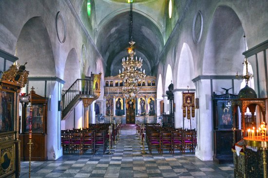 Άποψη του εσωτερικού του ιερού ναού Ελκομένου Χριστού Μονεμβασίας.