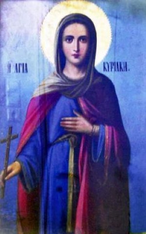 Λίγο ψηλότερα από τα βράχια, που χτυπούσε το κύμα, βρισκόταν ωστόσο μία ακόμα ευρύχωρη σπηλιά. Εκεί ένας από τους ιδιοκτήτες των γειτονικών κτημάτων -Κακωνάς στο επώνυμο, από την γειτονική τοποθεσία του Βλυχού- κάποτε βρήκε μία εικόνα της αγίας Μεγαλομάρτυρος Κυριακής της θαυματουργής. Με ευλάβεια παρέλαβε την εικόνα της αγίας από το σημείο εκείνο στη σπηλιά και την τοποθέτησε σε άλλο, πιο ομαλό μέρος του κτήματός του, σχεδιάζοντας να χτίσει μικρό προσκυνητάρι, για να τοποθετήσει σε αυτό την εικόνα της Αγίας. Τα σχέδιά του όμως στάθηκε αδύνατο να πραγματοποιηθούν, καθώς έβρισκε ξανά την εικόνα στη σπηλιά του βράχου, όπου επέστρεφε με τρόπο θαυμαστό μόνη της.