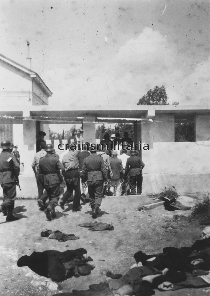 Στα καρέ βλέπουμε τους Έλληνες πολιτικούς κρατουμένους να οδηγούνται ανά δύο στο σκοπευτήριο. Σε άλλο καρέ είναι πλέον παρατεταγμένοι στον «Τοίχο της Καισαριανής» περιμένοντας ηρωικά τις ριπές από τα πολυβόλα. Οι Έλληνες, στην πλειοψηφία τους κομμουνιστές και μέλη του ΕΑΜ, έχουν παροιμιώδη ψυχραιμία παρότι γνωρίζουν πως διανύουν τα τελευταία δραματικά βήματα της ζωής τους και δείχνουν καλοντυμένοι και ήρεμοι. Οι περισσότεροι είχαν παραδοθεί στους Γερμανούς από το καθεστώς Mεταξά.