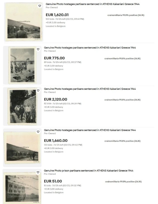 Οι φωτογραφίες και η προγραμματιζόμενη δημοπρασία έγιναν γνωστά το βράδυ του Σαββάτου 15/2/2026 μέσω της σελίδας στο Facebook με την ονομασία «Greece at WWII Archives». Οι τιμές στις οποίες δημοπρατούνταν οι φωτογραφίες ξεκινούσαν για κάθε μία από αυτές από τα 51 ευρώ φτάνοντας έως και τα 2.120 ευρώ για εκείνες που απεικόνιζαν πρόσωπα σε κοντινά πλάνα.