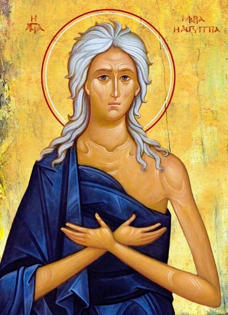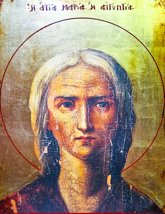 Η Οσία Μαρία καταγόταν από την Αίγυπτο και έζησε τον 6ο αιώνα μ.Χ., την εποχή του αυτοκράτορα Ιουστινιανού. Στα νεανικά της χρόνια ζούσε μέσα στην ακολασία και παρέσυρε πολλούς ανθρώπους στην ηθική καταστροφή. Όταν ήταν 12 χρονών ξέφυγε από την προσοχή των γονιών της και πήγε στην Αλεξάνδρεια, όπου επί 17 χρόνια ζούσε άσωτη ζωή. Από περιέργεια πήγε, με πολλούς άλλους προσκυνητές, στα Ιεροσόλυμα, για να παραβρεθεί στην ύψωση του Τίμιου Σταυρού. Όταν όμως θέλησε να μπει στον ναό της Αναστάσεως, την ημέρα που υψωνόταν ο Τίμιος Σταυρός, ένοιωσε 3-4 φορές κάποιαν αόρατη δύναμη μέσα, που την εμπόδιζε να μπει, ενώ το πλήθος έμπαινε ανεμπόδιστα.