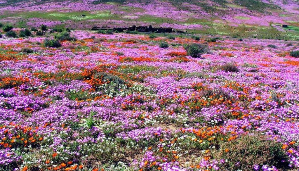 Στην περιοχή Namaqualand της Νότιας Αφρικής, ένα κατά τα άλλα ξηρό και σχεδόν άγονο τοπίο, Αύγουστο και Σεπτέμβριο, μετατρέπεται για λίγες εβδομάδες σε έναν πολύχρωμο …πίνακα γεμάτο αγριολούλουδα. Η ανθοφορία κάθε χρονιάς εξαρτάται από τις βροχές και δεν έχει πάντα την ίδια ένταση, κάτι που κάνει το φαινόμενο ακόμη πιο ιδιαίτερο.