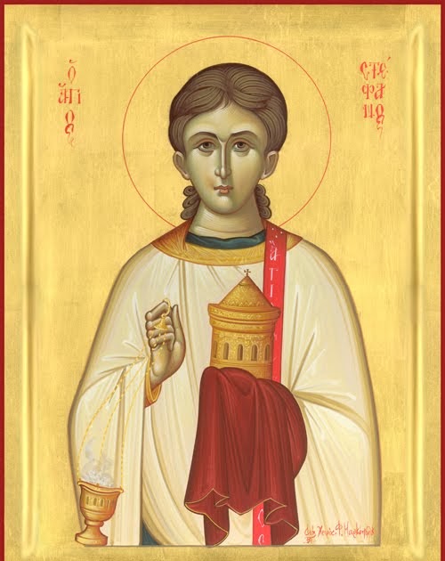Ὡς ἀστὴρ φαεινὸς σήμερον συνεξέλαμψε, τῇ Γεννήσει Χριστοῦ, ὁ Πρωτομάρτυς Στέφανος, ἀστράπτων καὶ φωτίζων τὰ πέρατα ἅπαντα, τῶν Ἰουδαίων μόνον ἠμαύρωσε τὴν πᾶσαν δυσσέβειαν, σοφίας λόγοις τούτους διελέγξας, ἀπὸ τῶν Γραφῶν διαλεγόμενος, καὶ πείθων τούτους, τὸν γεννηθέντα ἐκ τῆς Παρθένου Ἰησοῦν, Υἱὸν αὐτόν εἶναι Θεοῦ, κατῄσχυνε τούτων τὴν ἀσεβῆ κακουργίαν, ὁ Πρωτομάρτυς καὶ θεῖος Στέφανος.