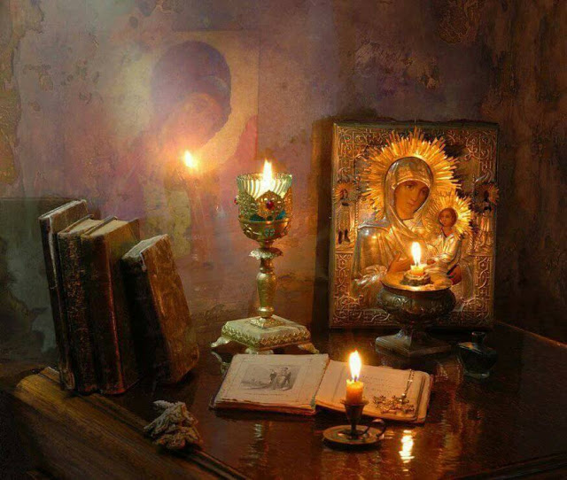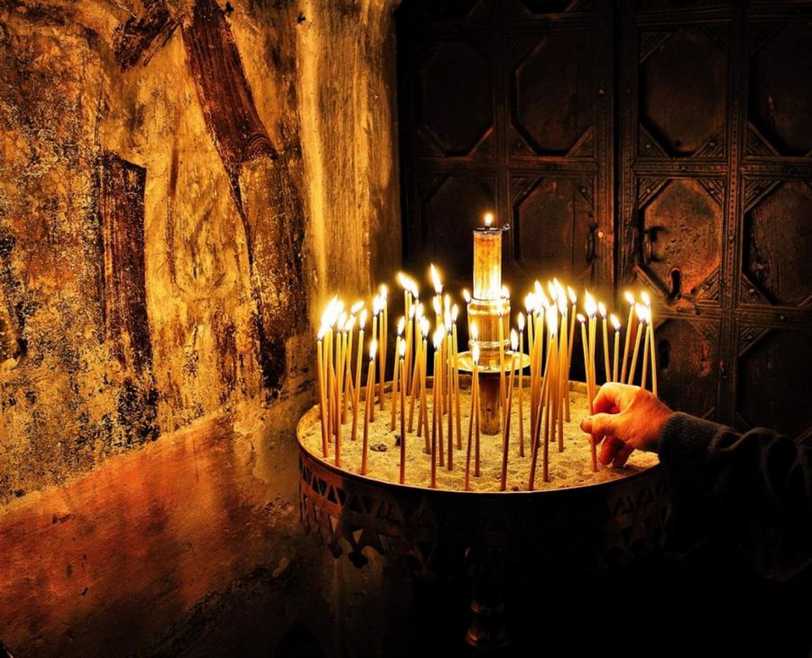 – ῎Ελα, παιδί μου, ἐδῶ νὰ μὲ βοηθήσῃς. Καὶ παραδίδει εἰς τὰς τρεμούσας ἐκ συγκινήσεως χεῖρας τοῦ σπεύσαντος δεκαετοῦς μικροῦ παιδίου μικρὰν λαμπάδα, ἀφοῦ ἤναψεν αὐτὴν ἐκ τοῦ ἀκοιμήτου φωτός, ποὺ φυλάσσεται ἐπὶ τοῦ ἱεροῦ θυσιαστηρίου.