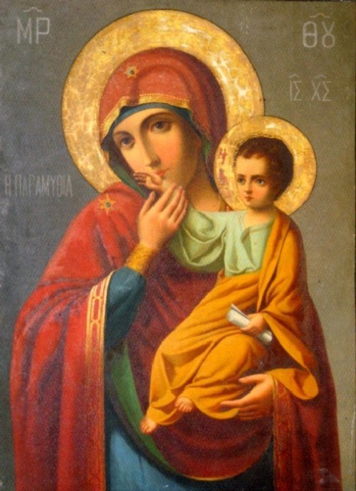 Ο Κύριος μας αξίωσε την Μητέρα Του, να την έχουμε και εμείς Μητέρα Πνευματική. Είμεθα αληθώς τέκνα της Παναγίας Μητρός του Θεού; Πόσες φορές η Παναγία μας δεν επεμβαίνει με τις φιλάνθρωπες της δεήσεις να κατευνάσει και αυτόν τον θυμό του Κυρίου μας, όταν τα πολλά και μεγάλα μας λάθη Τον παροργίζουν υπερβολικά! Ας δούμε λοιπόν, γιατί η ομώνυμη εικόνα της Παναγίας ονομάστηκε «Παραμυθία». Χαρακτηριστικό παράδειγμα αποτελεί το παρακάτω θαύμα, στο οποίο η Παναγία μας έσωσε τους αμελείς μοναχούς ενός μοναστηριού στο Άγιον Όρος από τους πειρατές.