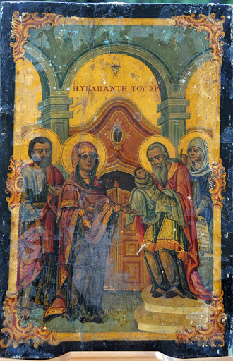 Το γεγονός της Υπαπαντής του Κυρίου εξιστορείται από τον ευαγγελιστή Λουκά, στο κεφ. Β’, στ. 22-35 του Ευαγγελίου του. Συνέβη σαράντα (40) ημέρες μετά τη γέννηση του Ιησού. Σύμφωνα με το Μωσαϊκό νόμο, η Παρθένος Μαρία, αφού συμπλήρωσε τον χρόνο καθαρισμού από τον τοκετό, πήγε στο Ναό της Ιερουσαλήμ μαζί με τον Ιωσήφ, για να τελεσθεί η τυπική αφιέρωση του βρέφους στον Θεό, κατά το «πάν άρσεν διανοίγον μήτραν (δηλαδή πρωτότοκο) άγιον τω Κυρίω κληθήσεται» και για να προσφέρουν θυσία, που αποτελείτο από ένα ζευγάρι τρυγόνια ή δύο μικρά περιστέρια.