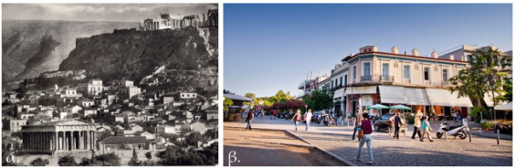 α. Η παραλία του Βόλου την εποχή των Βαλκανικών Πολέμων β. Σύγχρονη άποψη της παραλίας Βόλου