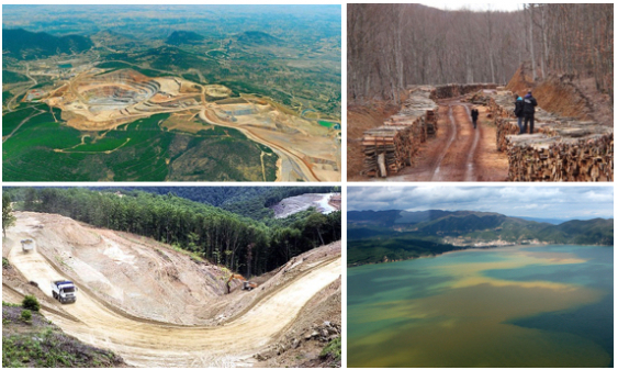 Η εκμετάλλευση του ορυκτού πλούτου απαιτεί εκτεταμένες επεμβάσεις και επιφέρει σοβαρή διαταραχή και επιβάρυνση στο φυσικό περιβάλλον, κυρίως δε στο τοπίο. Η εγκατάσταση λατομικών και μεταλλευτικών εκμεταλλεύσεων προϋποθέτει τη δημιουργία έργων υποδομής, δρόμων, εκσκαφών και αποθέσεων, με άμεση συνέπεια την υποβάθμιση της βλάστησης και του εδάφους, την αλλοίωση του ανάγλυφου, τη δημιουργία δυσμενών οικολογικών συνθηκών στις διαταρασσόμενες επιφάνειες και την πρόκληση αλλαγών στον χαρακτήρα του φυσικού τοπίου, πέρα από τις ζημίες και οχλήσεις των περιοίκων και του ευρύτερου χώρου.[10]